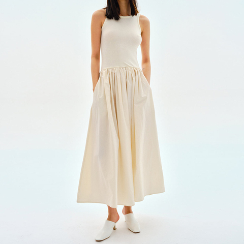 Fabricante OEM personalizado de las mujeres sin mangas Midi Long Tank Top un vestido de línea
