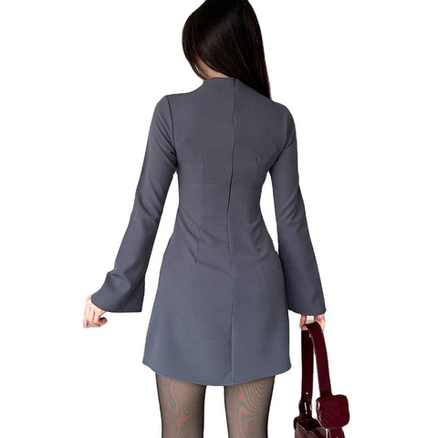 Tùy Chỉnh O-Cổ A-Line Mini Dài Tay Áo Thanh Lịch Ngắn Ăn Mặc Cho Phụ Nữ