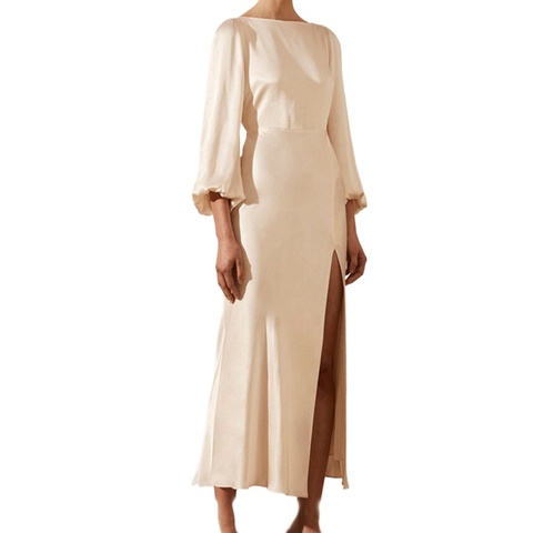 Tùy chỉnh chất lượng cao Casual dài tay áo satin midi Slit DRESS đối với phụ nữ