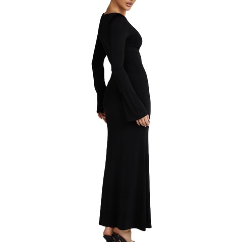 Phụ nữ sang trọng thanh lịch buổi tối Gown DRESS Lady Casual dài tay áo đen Bodycon maxi Dresses